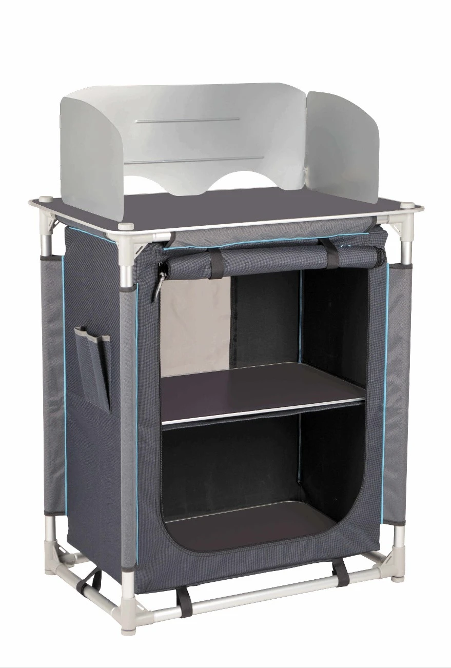 Het waterbestendige werkoppervlak zorgt ervoor dat een onverwachte regenbui je kookplezier niet bederft. Daarnaast heeft het kookeiland voldoende opbergruimte voor al je keukengerei, zodat je altijd georganiseerd blijft, zelfs midden in de natuur. Het stabiele werkoppervlak, gemaakt van stevig aluminium, biedt je de perfecte basis om je kookkunsten te tonen.
