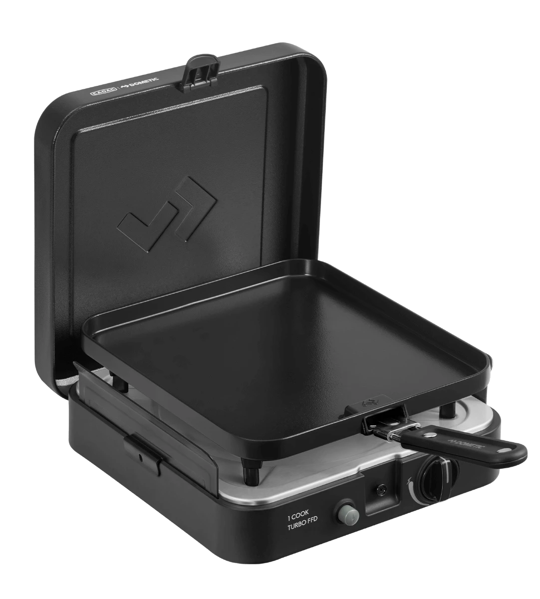 Naast de twee windschermen wordt het de Cadac Cook 1 Turbo FFD geleverd met pandrager, bakplaat en percolatorhouder. De bakplaat heeft een afneembare handgreep en is voorzien van een GreenGrill coating. Hierdoor kook je gezonder en maak je de plaat extra eenvoudig schoon. Daarnaast wordt een handige draagtas meegeleverd.