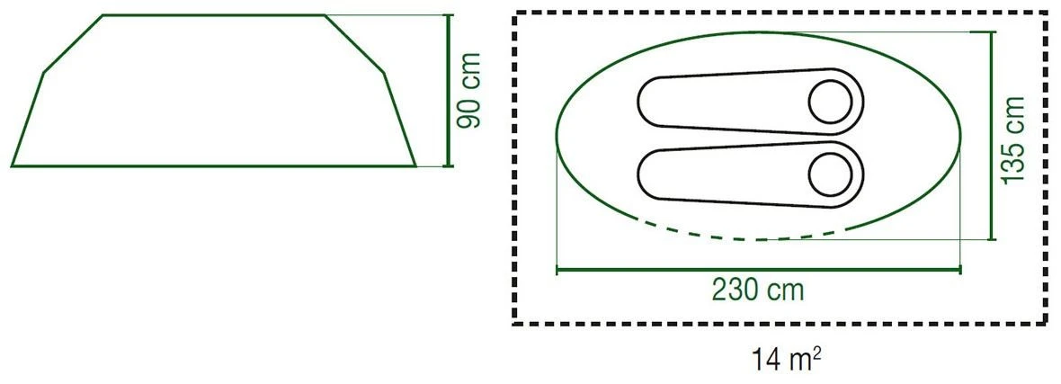 De tent heeft een waterkolom van 2000 mm