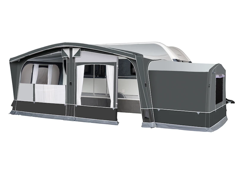 Ontdek de Dorema Octavia Air, jouw stijlvolle reisgenoot die elke kampeerplek omtovert tot een oase van modern design. Met zijn elegante, ronde vormgeving steelt deze voortent de show en biedt hij een harmonieuze aanvulling op je caravan.