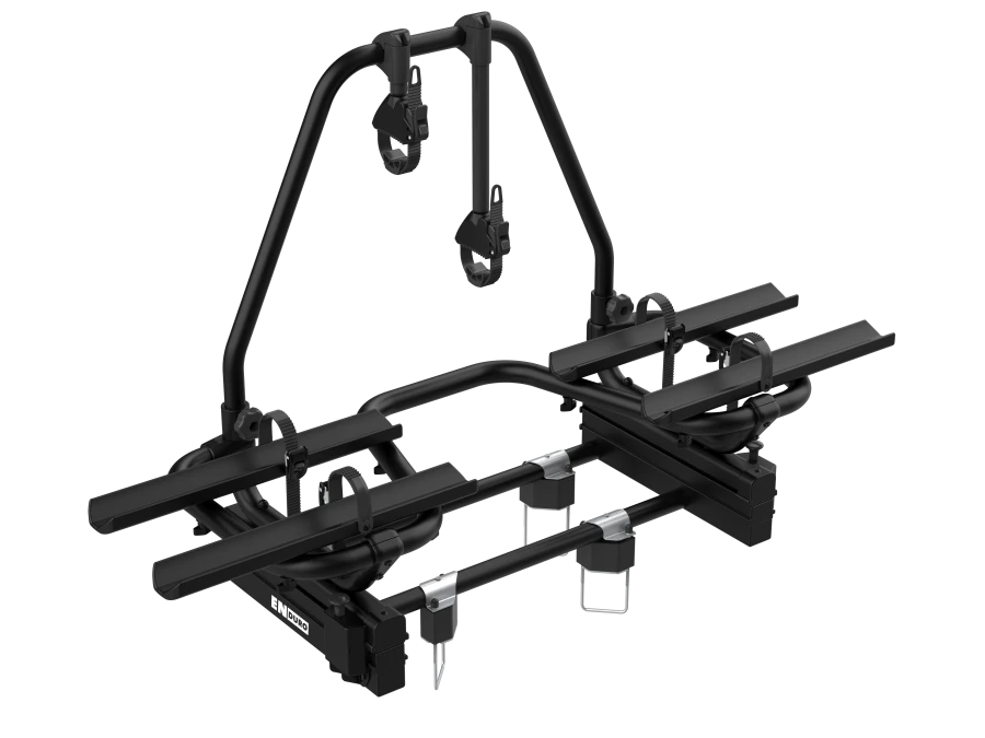 De fietsendrager is geschikt voor 2 (elektrische) fietsen, heeft een max. draaggewicht van 60kg en weegt maar 12,5kg.