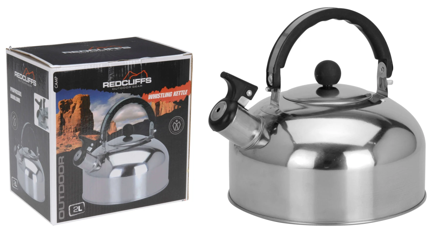Geniet van snel kokend water met onze 2L roestvrijstalen fluitketel, perfect voor thee en koffie