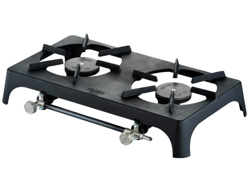 Dit gasstel met 2 pitten is voorzien van een gietijzeren ombouw en hierdoor zeer stevig.