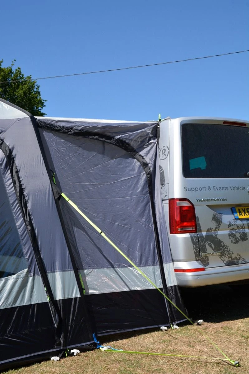 De Kampa Cross Air is van oudsher favoriet en bouwt voort op het succes. Dankzij de nieuwe steilere wanden ontstaat er meer hoogte aan de binnenkant en dus ook meer leefruimte. Het ontwerp van het voorpaneel is herzien en bevat nu een gebruiksvriendelijke D-deur die volledig op tot halverwege geopend kan worden. het geheel wordt overkapt door een voorluifel, waaronder je droog toegang kunt verkrijgen tot de voortent.