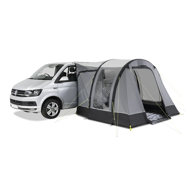 De Kampa Trip Air is een mooie bustent voor wie behoefte heeft aan een snel en eenvoudig onderdak. Het duurt slechts enkele seconden om de Trip air op te blazen maar dan heb je wel een heleboel ruimte voor een tafel en stoelen. De extra diepe aansluitflap van maar liefst 90 cm is voorzien van een ingang aan de linkerzijde zodat je snel je bus in en uit kunt stappen zonder dat je door de voortent moet. Er zijn diverse mogelijkheden om de aansluitflap aan de bus te bevestigen. Zo kun je de aansluitflap met scheerlijnen over het dak spannen. De aansluitflap is tevens voorzien van een 6 mm pees waardoor je de flap ook met een optionele magneetadapter op het dak kunt plakken of met een optionele peesadapter in een cassetteluifel of tentrail kunt bevestigen.