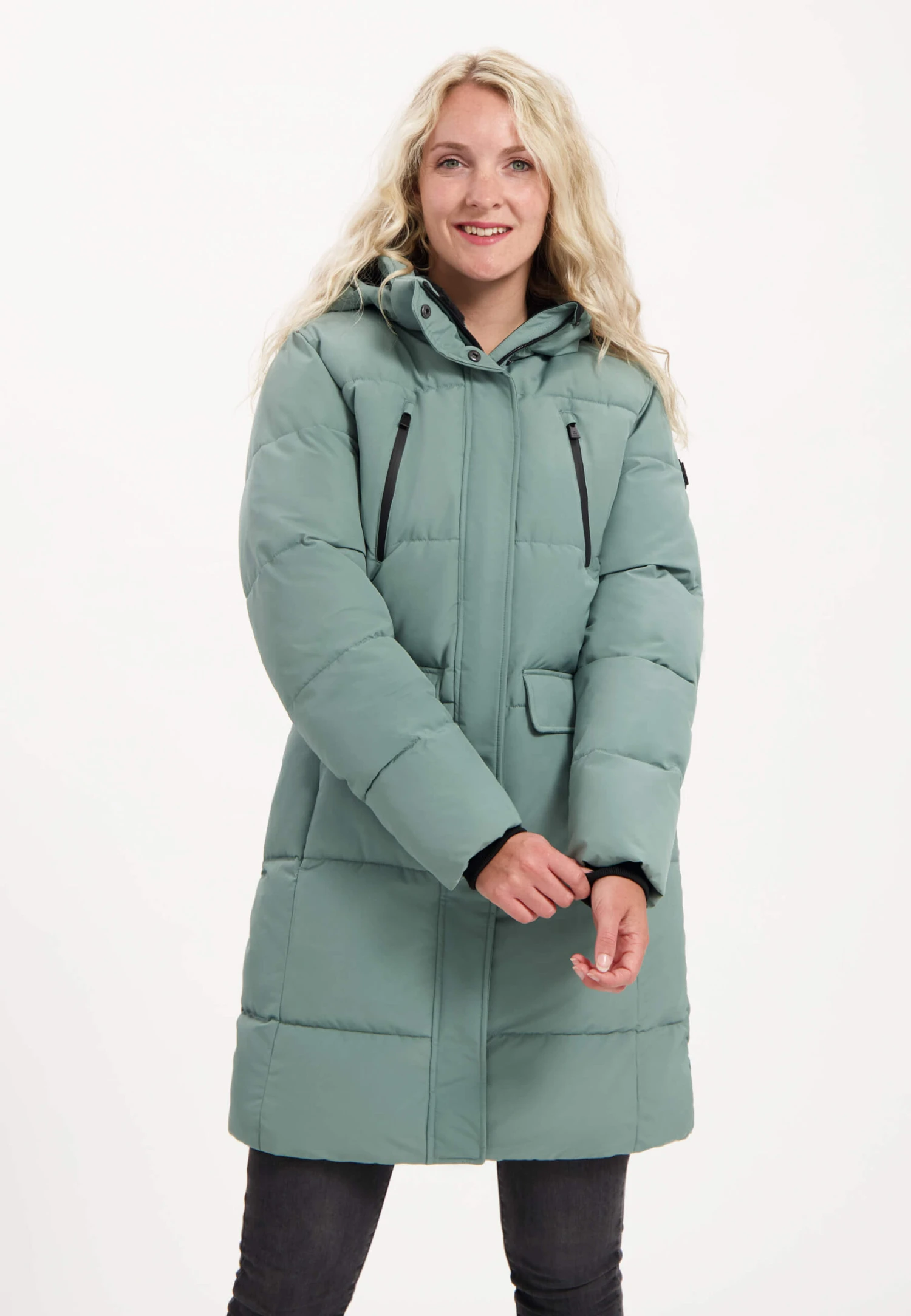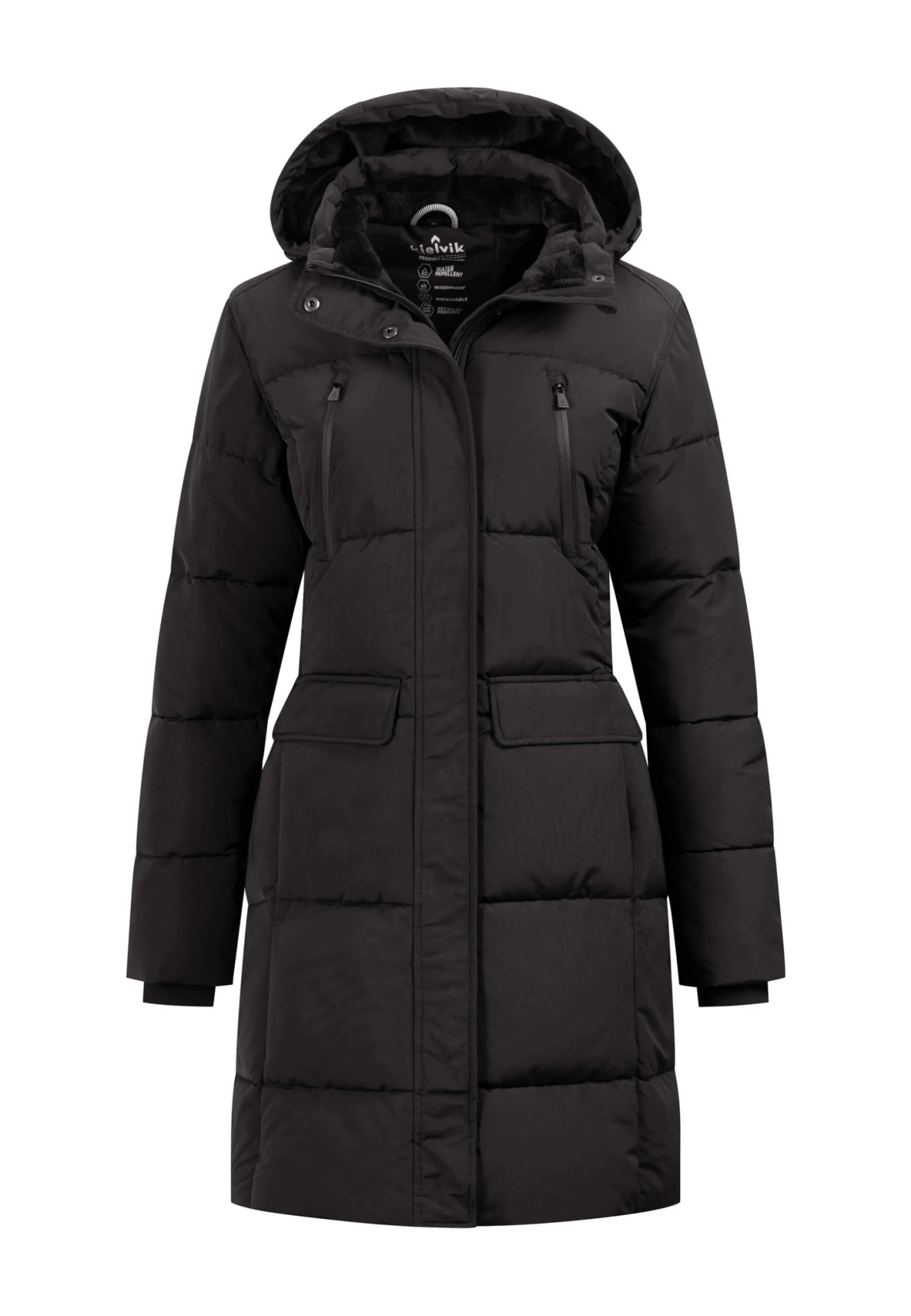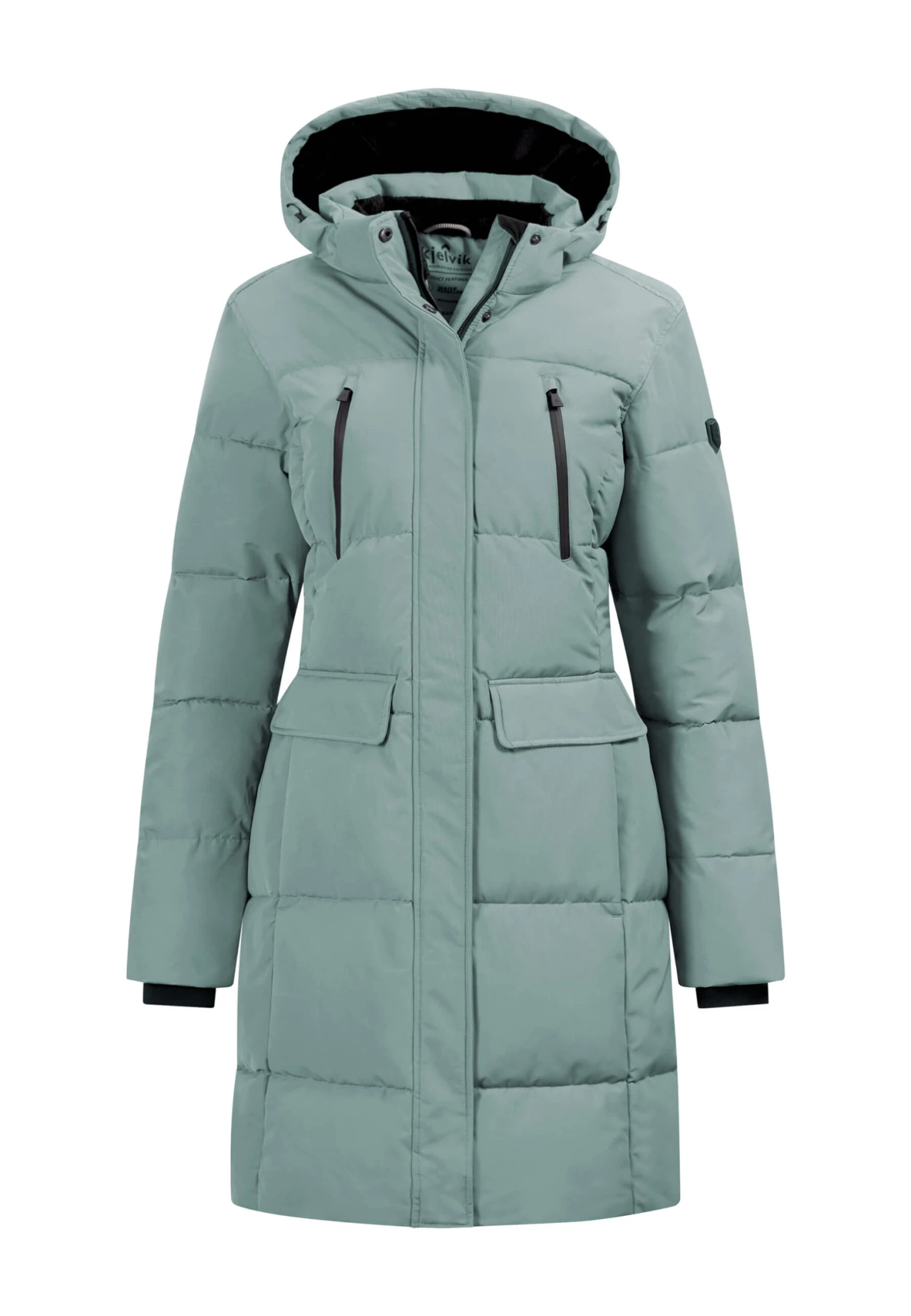 Kjelvik dames jas Isra is een heerlijke lange gewatteerde winterjas met 100% gerecyclede padding. Deze jas heeft een PFC-vrije waterafstotende finish en is winddicht. Verder beschikt de jas over een afneembare capuchon, twee steekzakken en twee borstzakken met ritssluiting en een handige 2-wegrits.