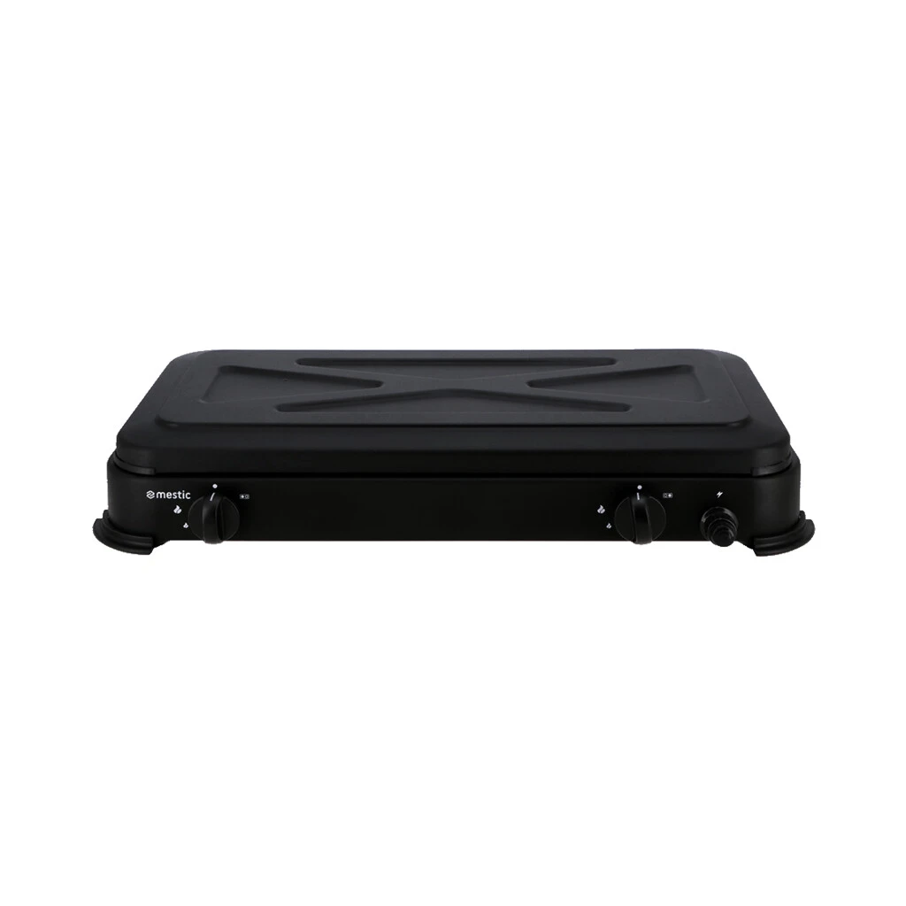 Dit kooktoestel is ideaal voor je kampeertrip. Hij is voorzien van twee sterke branders (2 x 2,2 kW) en werkt met elektrische ontsteking. Doordat je de pandrager kunt verwijderen, is hij extra gemakkelijk te reinigen.