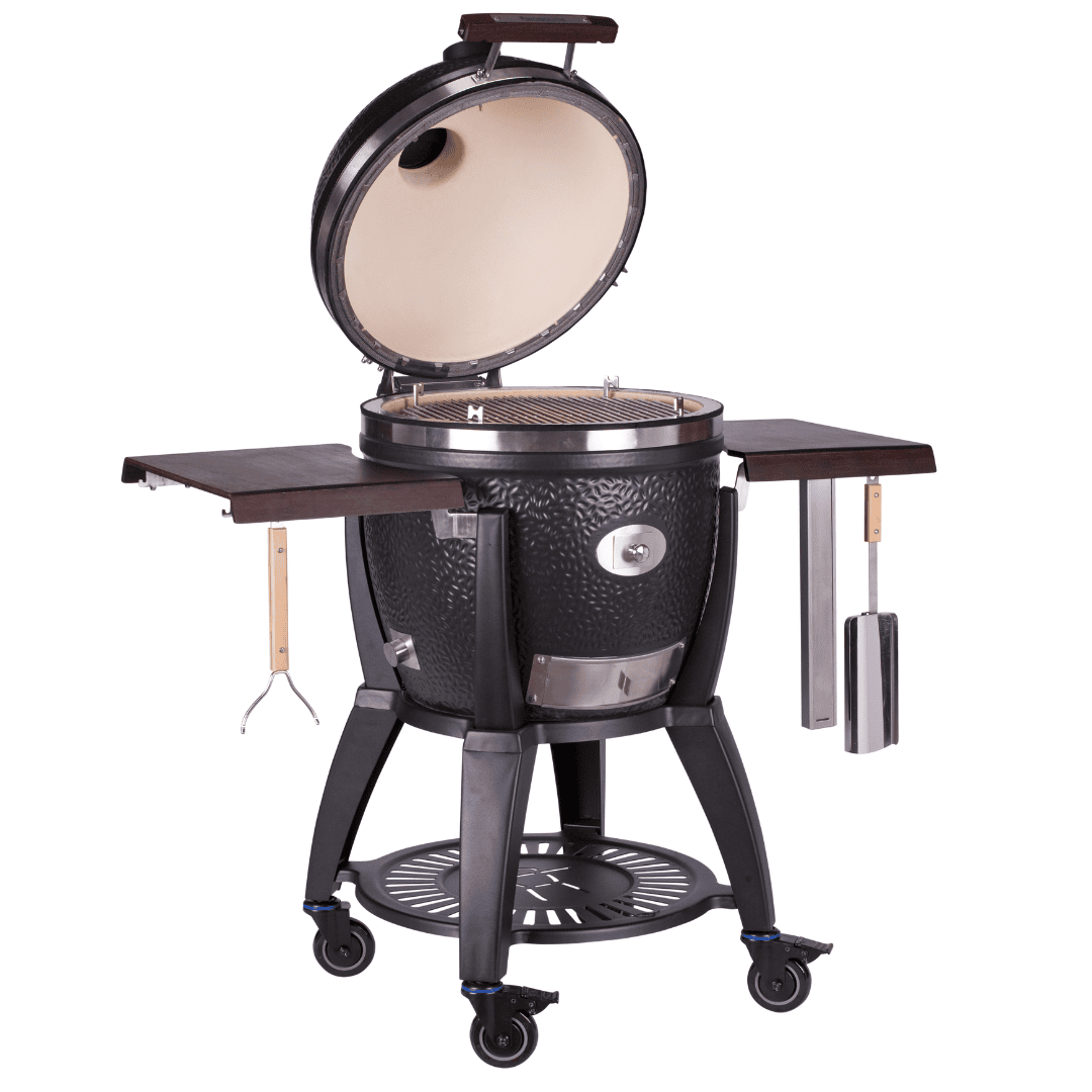 Ontdek de ultieme grillervaring met de Monolith Avantgarde Classic! Deze kamado heeft alles wat je nodig hebt voor de perfecte barbecue sessie. Met een degelijk robuust onderstel dat zich moeiteloos aanpast aan verschillende ondergronden, LED verlichting in de handgreep voor optimaal zicht, hoogwaardig roestvrijstalen beslag en keramiek van topkwaliteit voor een gelijkmatige warmteverdeling. De matzwarte finish van de kamado voegt een stijlvolle touch toe aan je tuin!