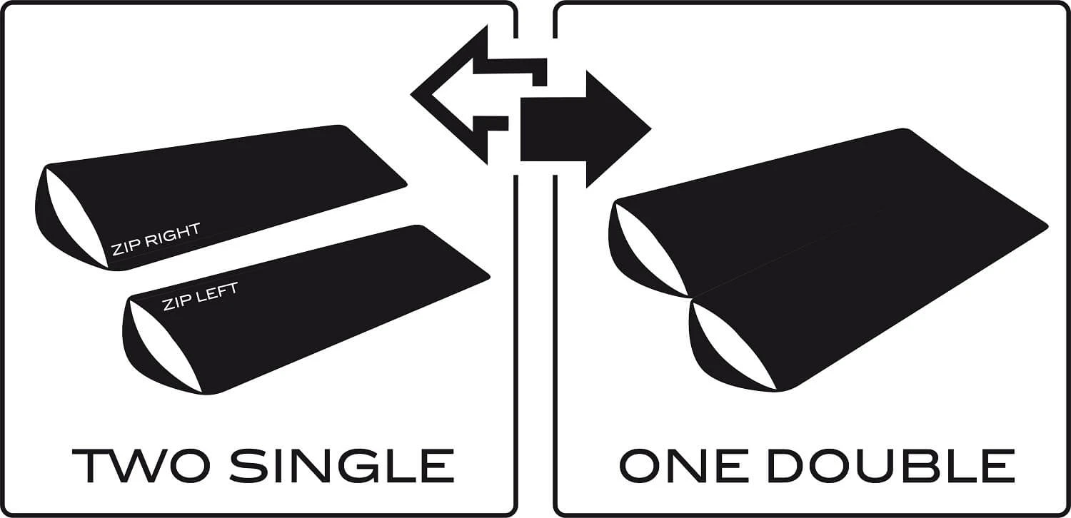 De slaapzak is verkrijgbaar met een linker- of een rechterritssluiting. Deze slaapzak heeft de ritssluiting aan de rechterkant.