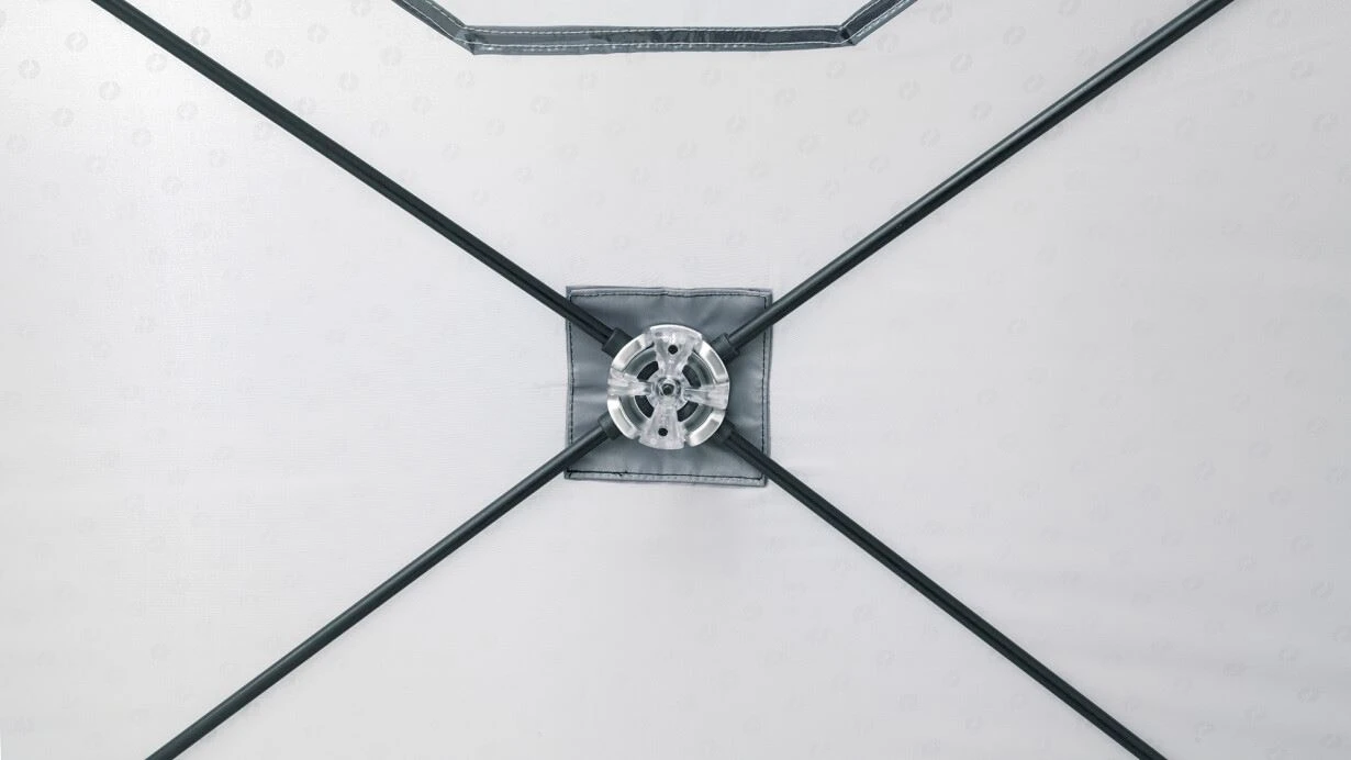 Rapid-pitch Lite System met windscherm en stokken die vooraf gekoppeld zijn