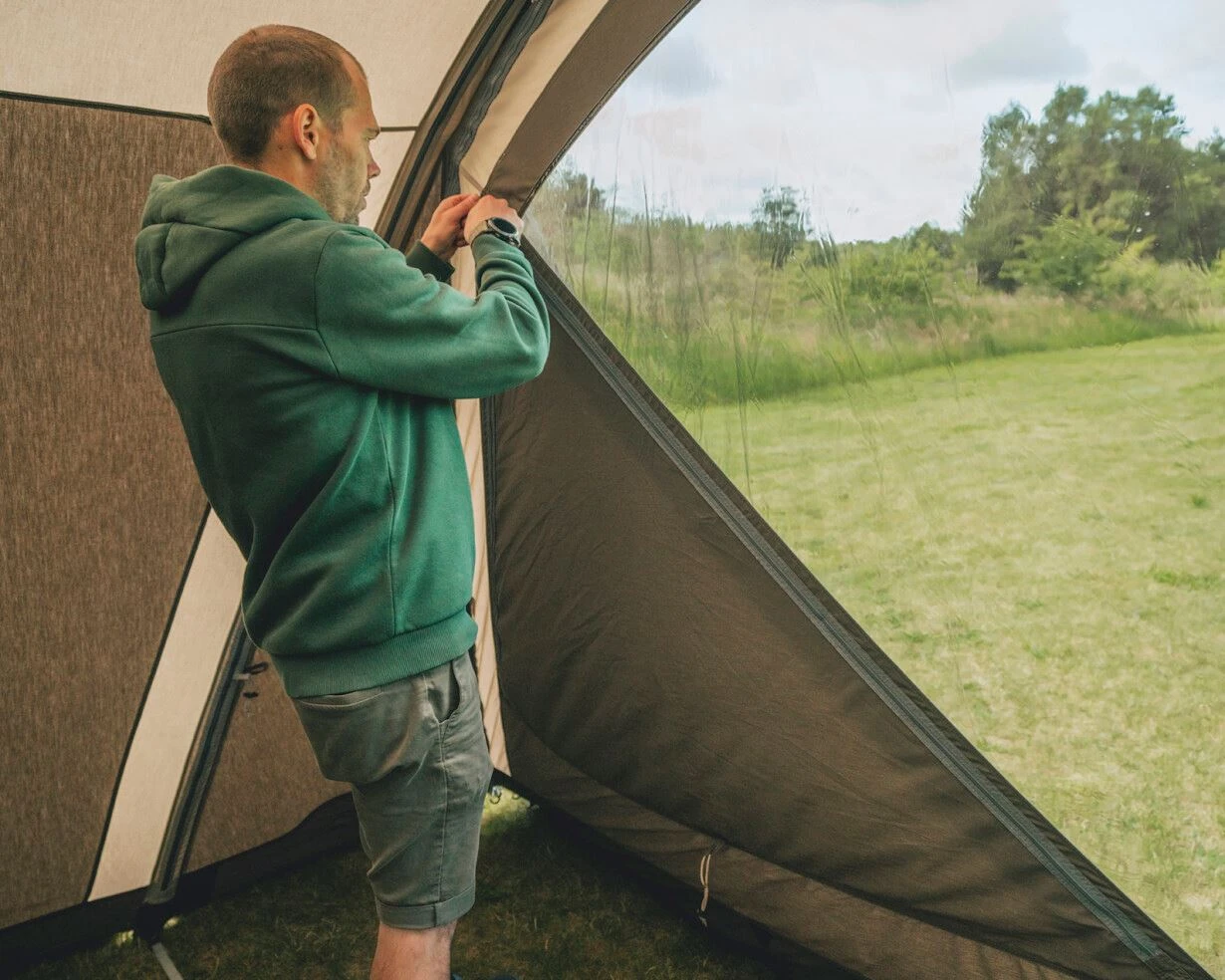 Ontdek de ruime en comfortabele Outwell Alabama 6 Air TC, perfect voor jouw volgende kampeeravontuur. Deze tent is voorzien van de nieuwste Outwell-innovaties en is super eenvoudig op te zetten met het OneAir-systeem. Het unieke dubbele voorontwerp biedt je de flexibiliteit om de tent te transformeren in een drie-zone ruimte of om te genieten van een open voortent door simpelweg de afneembare voordeur te gebruiken. Gemaakt van polycotton materiaal, is deze tent niet alleen ademend maar zorgt ook voor een aangenaam binnenklimaat. De verduisterde Ambassador Master-slaapkamers met gaasventilatie zorgen voor een comfortabele nachtrust. Bovendien geniet je van veel stahoogte en ruimte binnenin, wat deze tent ideaal maakt voor gezinsvakanties of groepsuitjes.