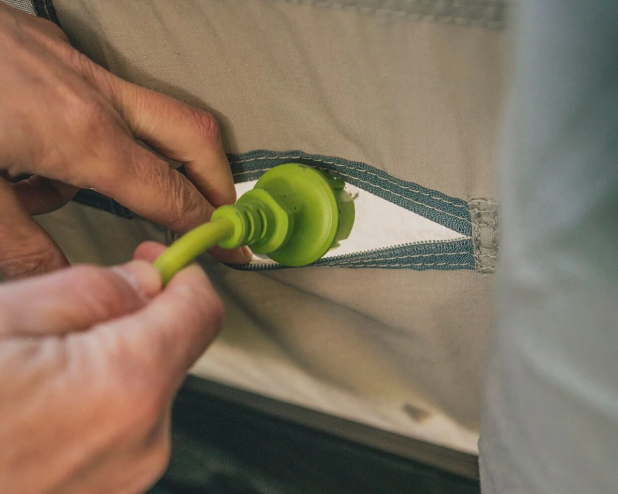 Ontdek de Virginia 5 Air TC tent, een echte blikvanger met zijn moderne en dynamische design. Je hebt de keuze om de tent te betreden via de hoofdingang of via de zijveranda die extra bescherming biedt tegen de elementen. De tweepersoons binnentent is optioneel; verwijder hem voor extra leefruimte of laat hem staan om van het uitzicht te genieten door de veranda. Dankzij de grote ramen baadt het interieur in natuurlijk licht, terwijl het vierkante ontwerp zorgt voor meer stahoogte en vloeroppervlak. Dit maakt het de perfecte plek om te ontspannen en kostbare momenten samen door te brengen.