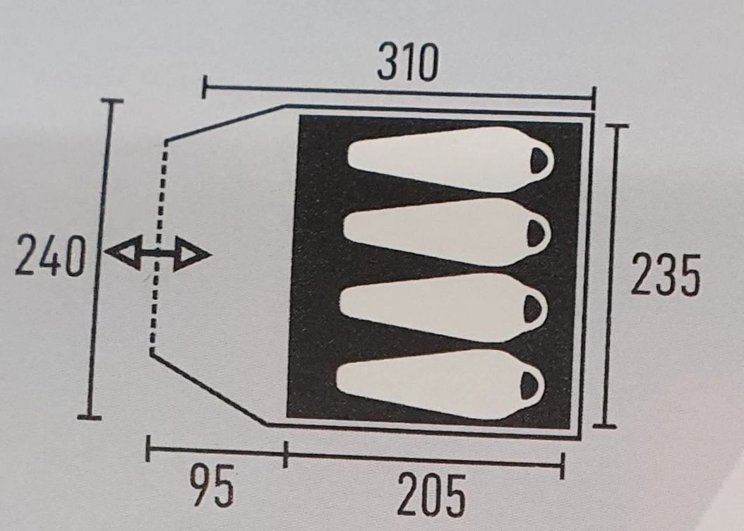 De breedte van 240 cm zorgt ervoor dat je veel ruimte in de tent hebt