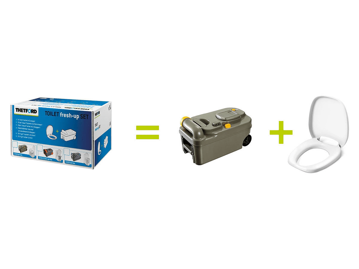 Heb je genoeg van die oude look in je camper of caravan en wil je de wc eens flink opfrissen? Met de Thetford Fresh Up Set C200 pak je dat klusje in een handomdraai aan! Even geen gedoe met verouderde toiletonderdelen; deze set geeft je toilet de maak-over die het verdient, alsof je een splinternieuwe camper hebt gekocht.