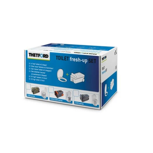 Heb je een beetje een opfrisser nodig voor je reisgenootje op wielen? Met de Thetford Fresh Up Set C220 tover je jouw cassettetoilet om in een oase van frisheid! Deze set is je beste vriend voor onderweg en zorgt ervoor dat alles weer ruikt en voelt als nieuw. Perfect voor die lange tochten waarbij je wel wat extra comfort en hygiëne kunt gebruiken.