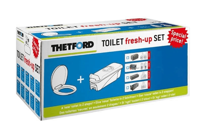 Heb je wel eens een makeover overwogen voor je camper-toilet? Met de Thetford Fresh Up Set voor C250-C260 modellen geef je jouw reistoilet niet alleen een hygiënisch, maar ook een comfortabel nieuw begin! Of je nu een langdurige reis voor de boeg hebt of gewoon iets fris wilt na al die avonturen, deze set is jouw beste kampeerkameraad.