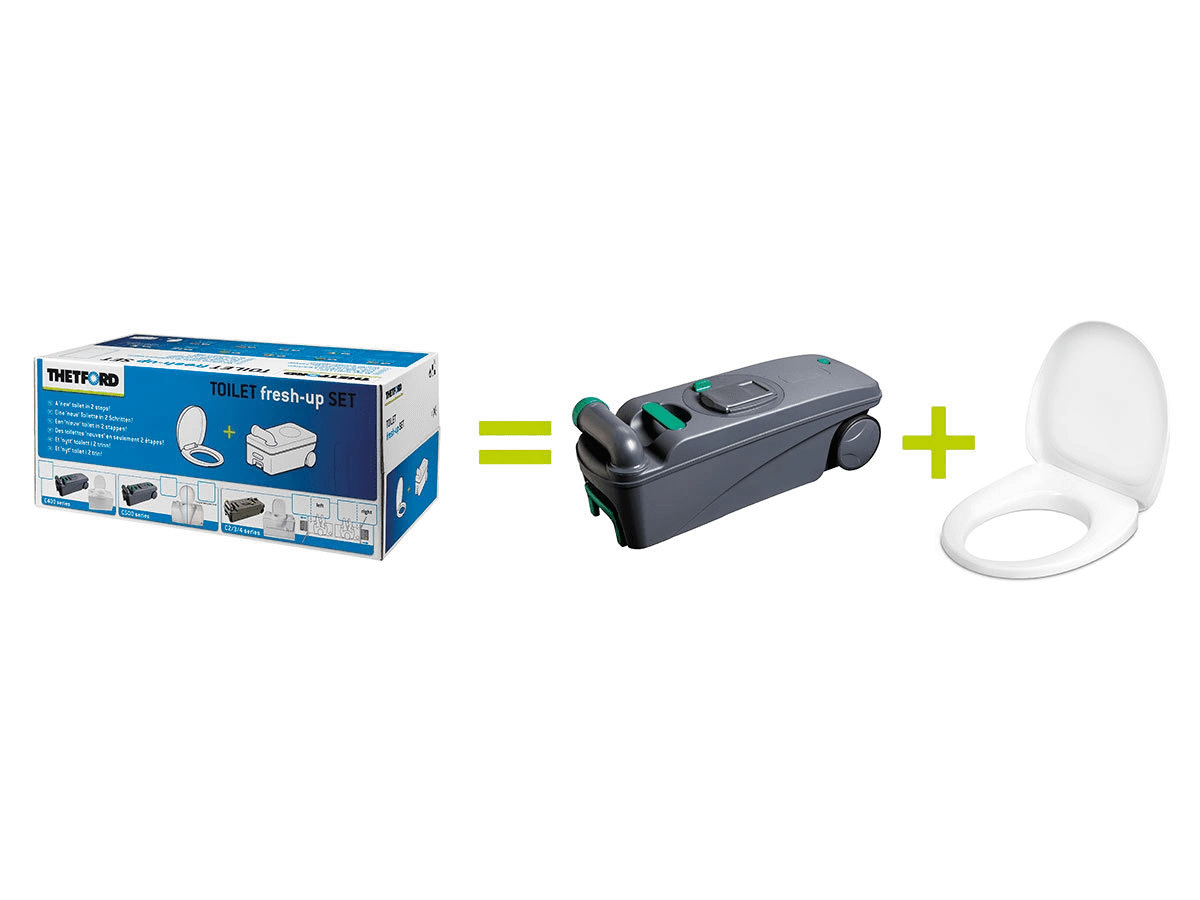 Is jouw trouwe vierwieler toe aan een kleine toilet-makeover? Met de Thetford Fresh Up Set C400 geef je jouw camper of caravan een instant upgrade naar comfort en hygiëne! Stel je voor, geen oude kalkaanslag meer en een fris gevoel bij elke stop onderweg. Deze set is alsof je jouw toilet een heerlijke spadag gunt, zonder dat je de deurbel hoort!